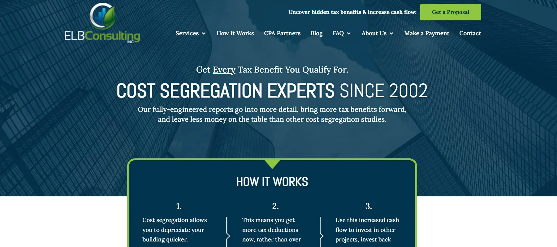 ELB Consulting focuses on serving owners with commercial properties typically valued under $10 million, a segment often overlooked by larger firms. Their process includes on-site inspections, detailed asset breakdowns, and audit-compliant documentation delivered in a clean, CPA-friendly format. They’re especially useful for retail, office, and small industrial projects.